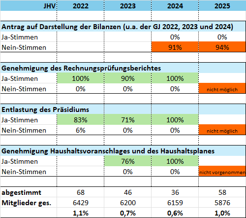 2025 lehnten die anwesenden Mitgliedern konsequent einen Einblick