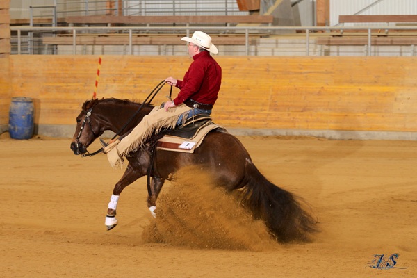 Jetzt auch im Club der 35jährigen (und älter) angekommen: EL DORADO WIND (Topsail Cody x Lady El Dorado; *21.05.1991 in Marietta, OK; Züchter Bob Loomis) hat 2014 ihre „offizielle“ Turnierkarriere (4 x AQHA Superior, 19 x World Show Qualifier, NRHA Bronze Trophy Champion Open, LTE über 25000 €) beendet, wobei sie zuletzt gegen Enkel und Urenkel ihrer Konkurrenten aus Jugendzeiten gewonnen hat, ist aber immer noch voll im Geschäft: Weiterhin genießt sie Ausritte durch Wald und Feld, manchmal gemütlicher, an anderen Tagen immer noch mit viel Ehrgeiz und im High-Speed-Modus.