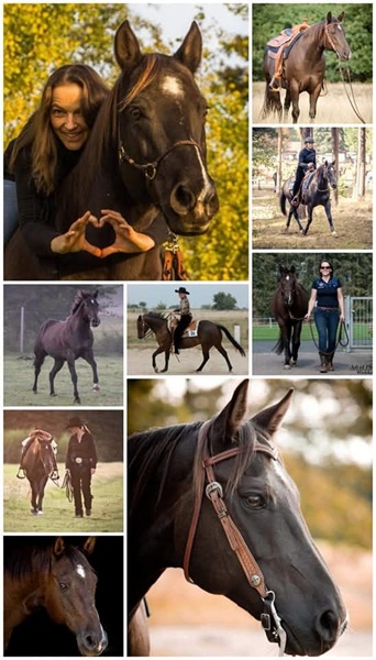 Als Jährling gekauft kam sie 1995 nach Deutschland. Beim Reiten in der Bahn wird ab und zu auch wie in alten Zeiten über Trail-Stangen geritten. Wie es sich für einen so wertvollen "Oldtimer" gehört, wird inzwischen auf die Reining-Manöver unter dem Sattel verzichtet. Das macht sie mehr als wett, wenn sie für sich auf der Koppel demonstriert, dass sie einen 30 Fuß-Slide (ca. 10 m) immer noch beherrscht.