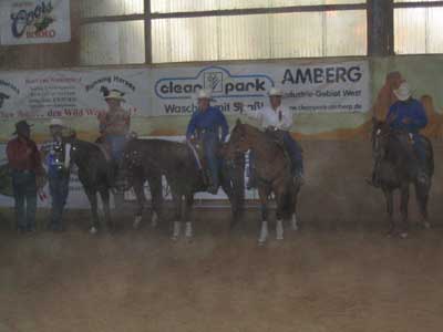 Wie immer souverän war Richter Hans Kuhn Jun., ein geprüfter NCHA Richter. Selbst in der Halle hatten die Teilnehmer ein texanisches Flair. Die Hallenbemalung aber auch die Temperaturen und der Staub erinnern an einen Sommertag in Texas. Das nächste Turnier in unserer Cupserie ist in München auf der Pferd International am 17. Mai 2007.