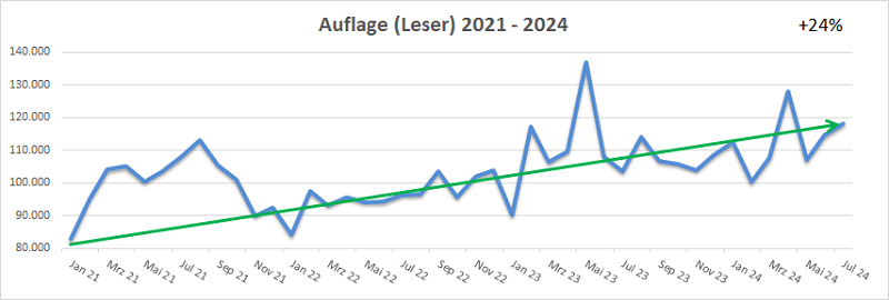 lag bei 118.141 Lesern im August 2024 (Vorjahr: 108.183 Leser).